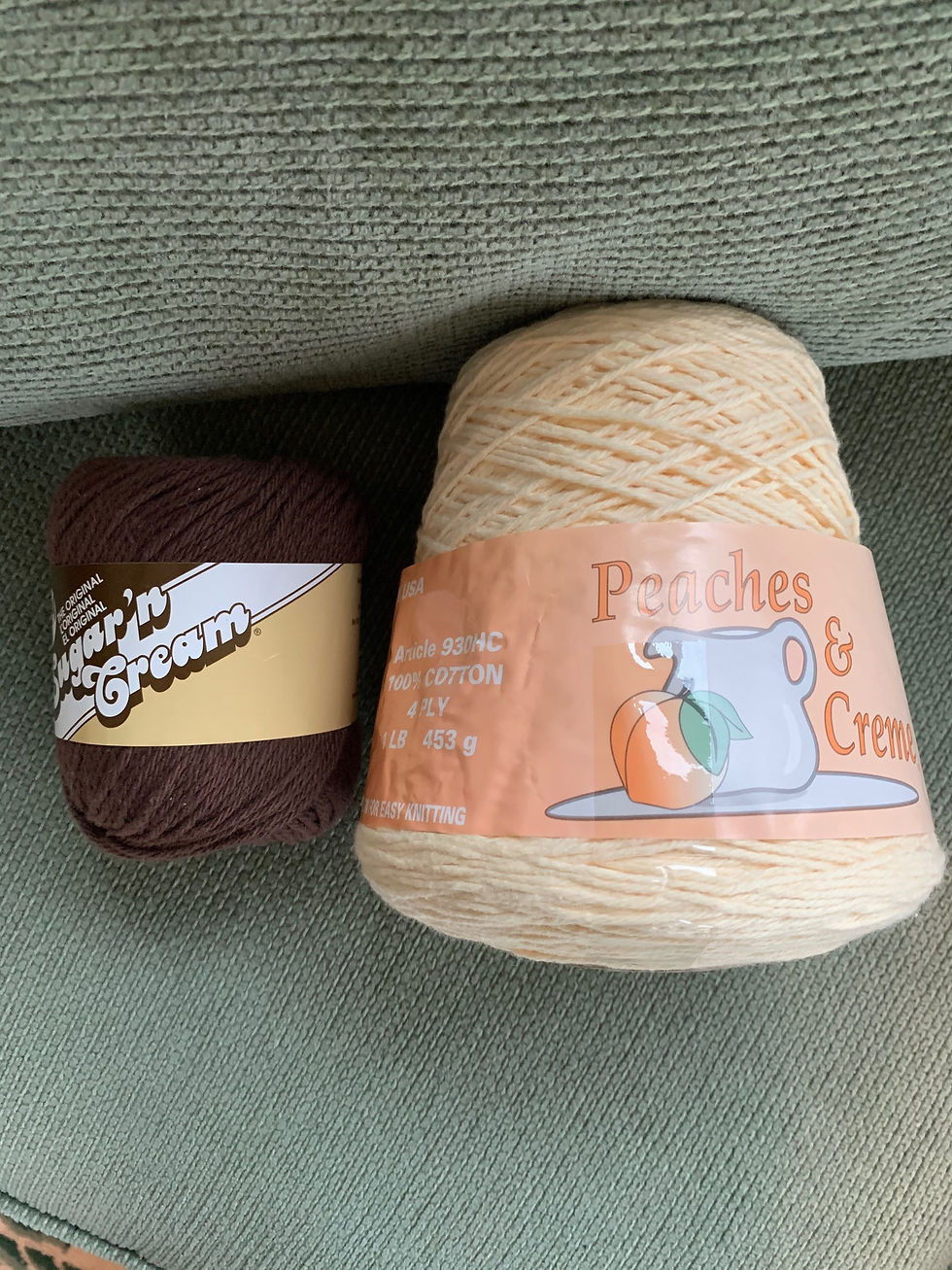 Hmm, oh well! This is my first time knitting from a cone. The ball band says it’s for knitting machines and weaving looms? Colors are Cream & Brown and the price was free👍