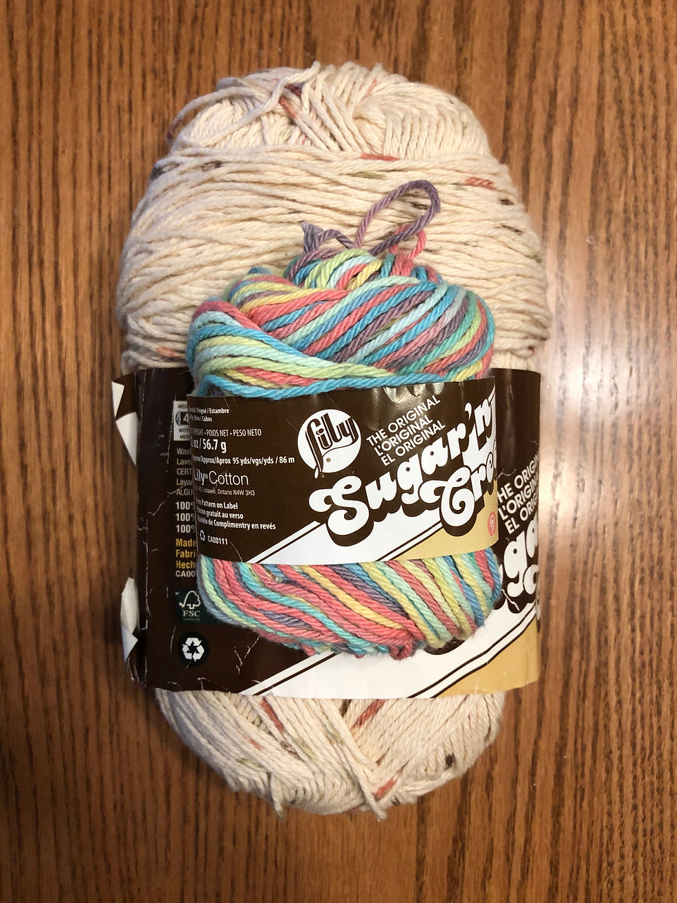 I do like the way the cotton is interfacing with the acrylic. I’m using LionBrandBasic Stitch which comes in 3oz. Skein which is nice for small project. The coral rose is old faithful Sugar’n Cream.
